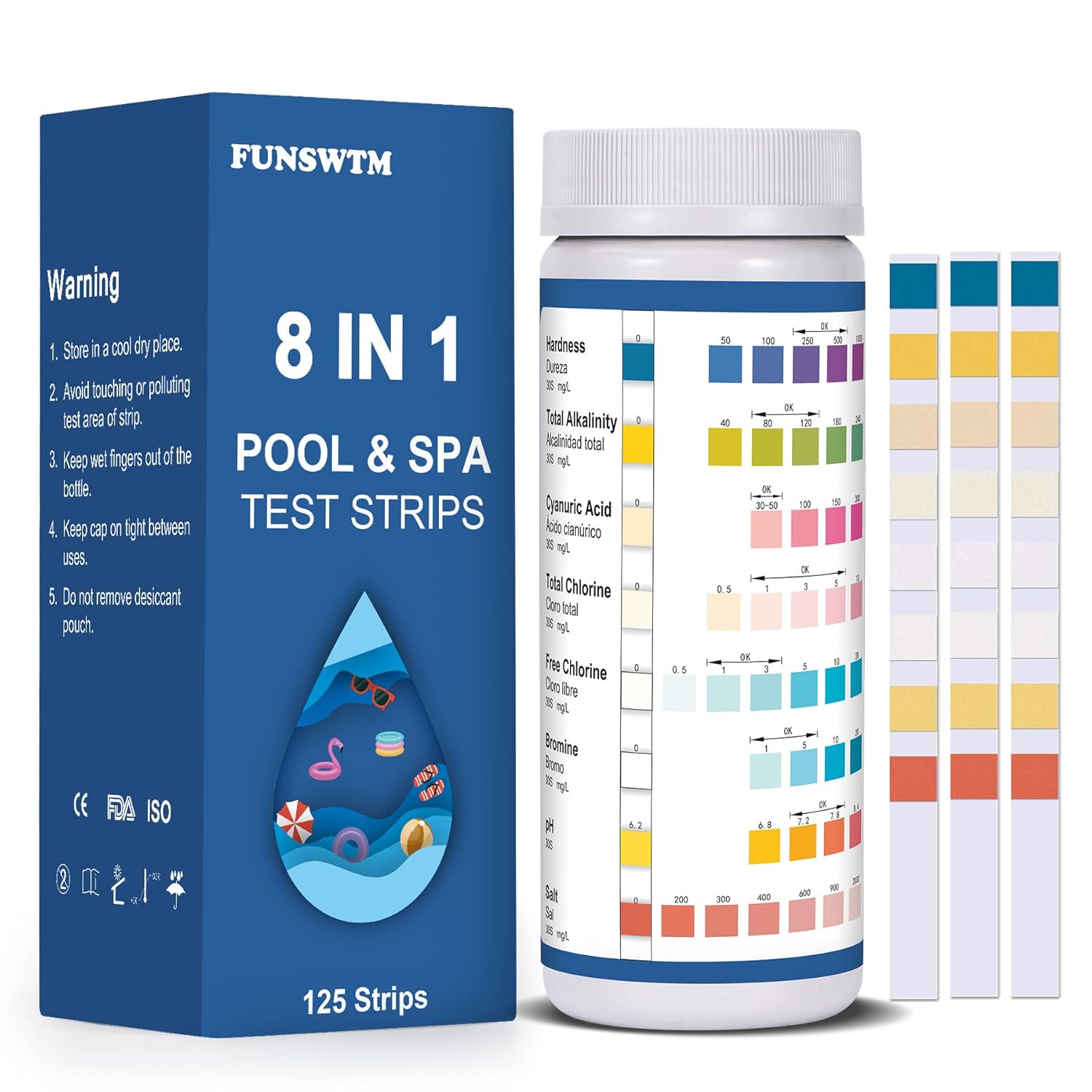 FUNSWTM Pool Test Strips, 125ct 8 in 1 for Pools & Spas.
