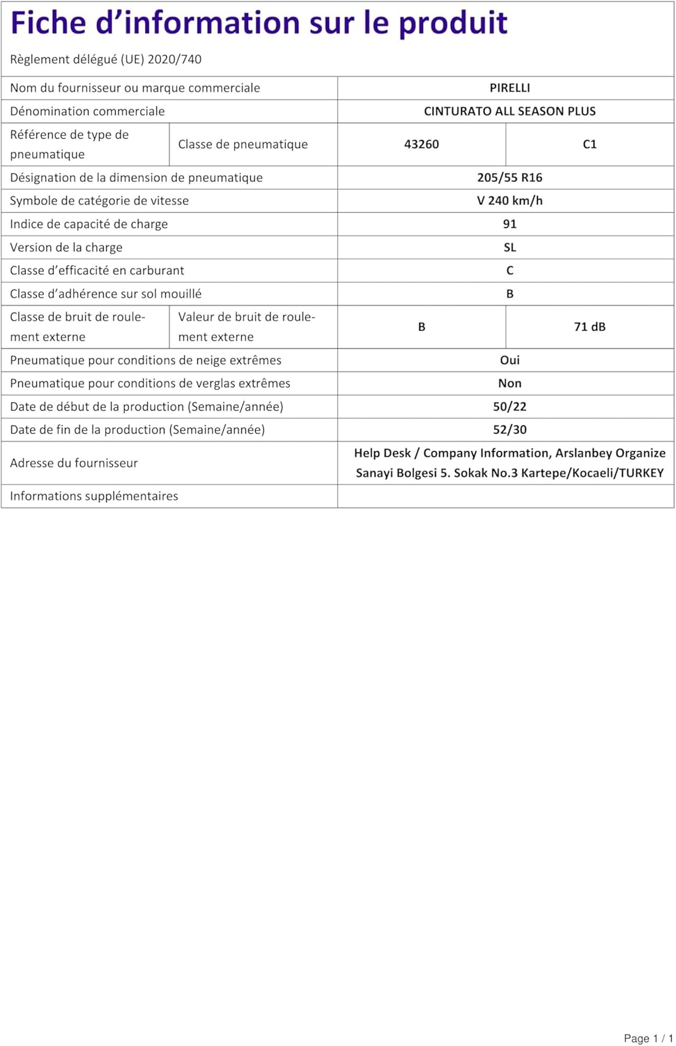 Overall, this tire offers a balance of performance, safety, and comfort. Whether you're driving in dry, wet, or snowy conditions, the Pirelli Cinturato All Season+ FSL M+S is a reliable and efficient choice for your vehicle.