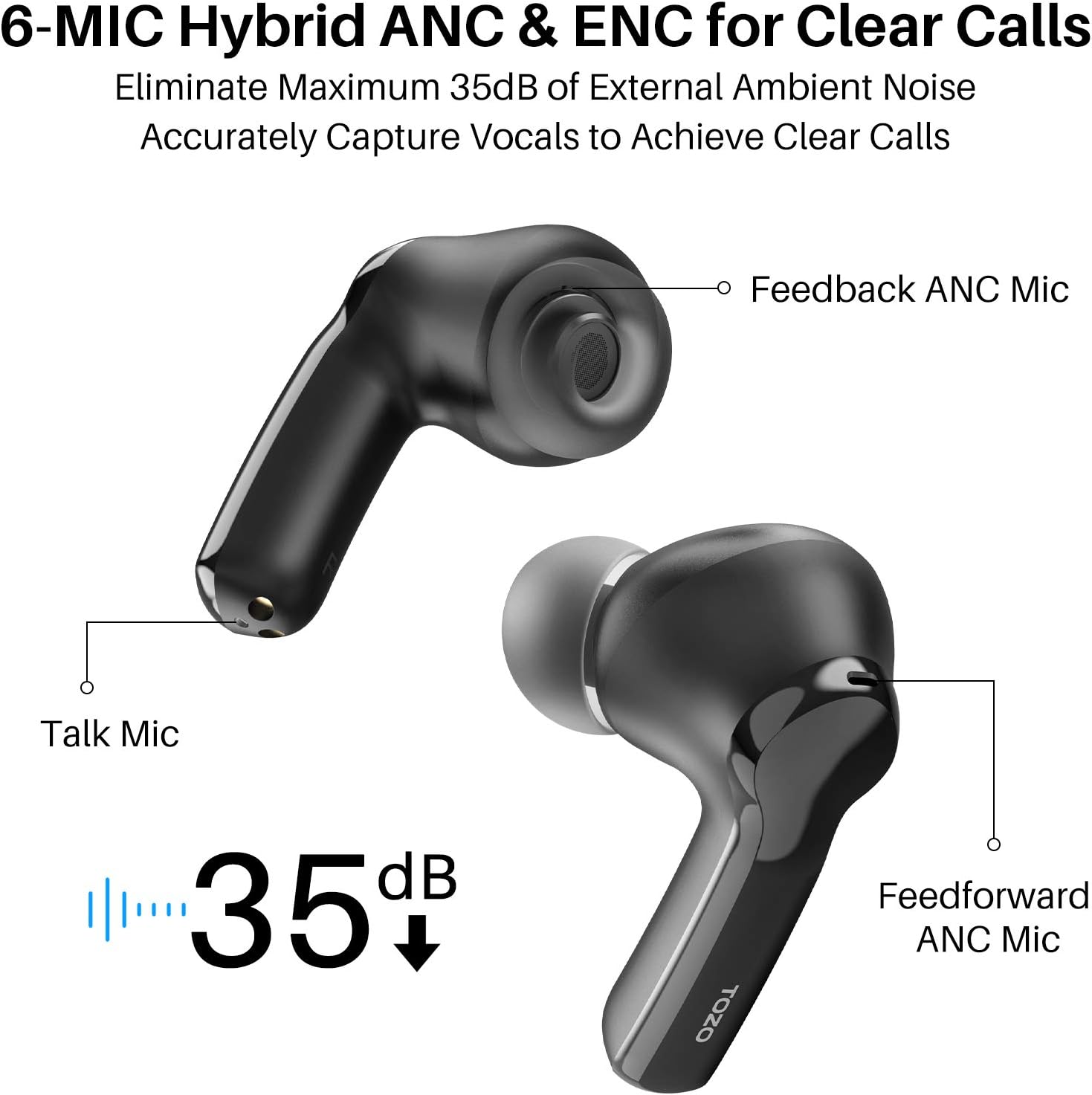 TOZO NC2 Hybrid Active Noise Cancelling Wireless Earbuds are a