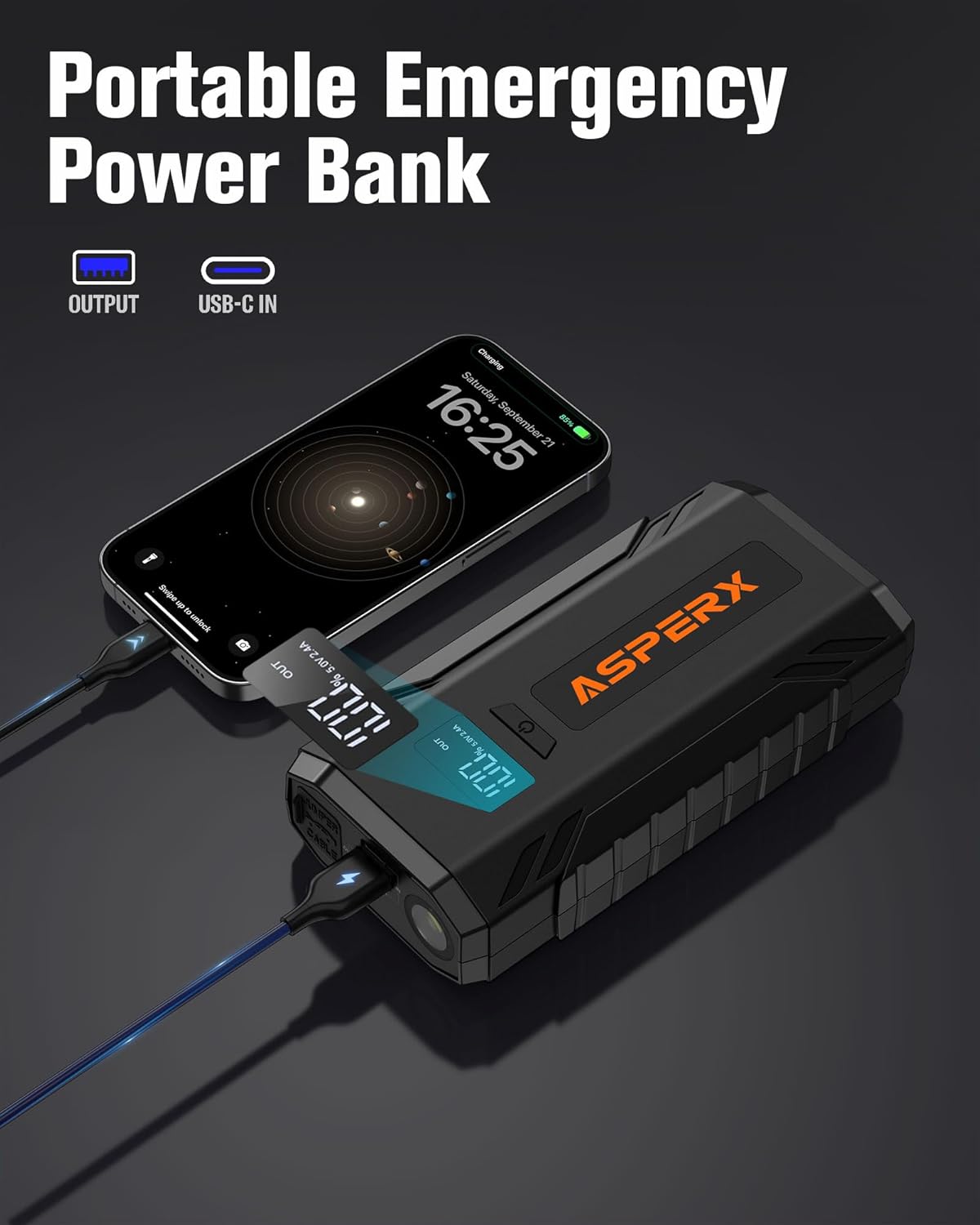 For optimal performance, it is recommended to keep the power above 50% before jump-starting a vehicle and to regularly charge the jump starter every 2-3 months. With a working temperature range of -20℃ to 60℃ (-4℉ to 140℉), this AsperX Car Jump Starter is a reliable and essential tool for any vehicle owner's emergency kit.